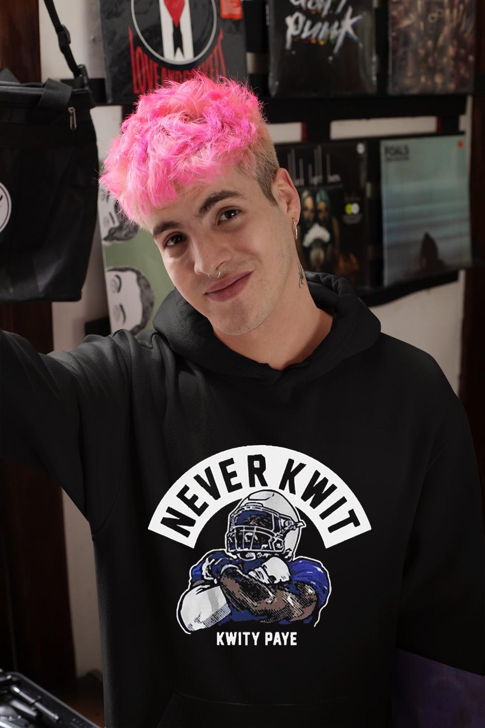 Indianapolis Colts Kwity Paye Never Kwit Shirt, Hoodie, Sweater, Longsleeve, Tank Top, V-neck, Kid t-shirt, Women T-Shirt For Men and Women: