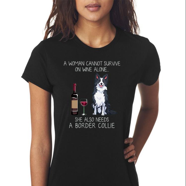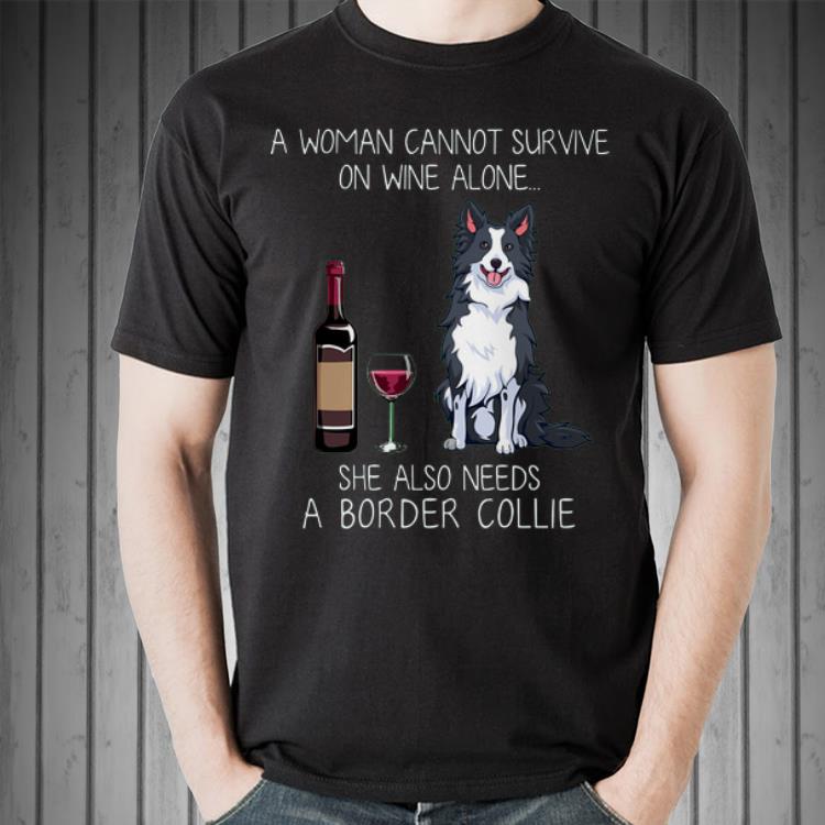 Awesome A woman cannot survive on wine alone she also needs a Border Collie shirt, Hoodie, Sweater, Longsleeve T-Shirt For Men and Women