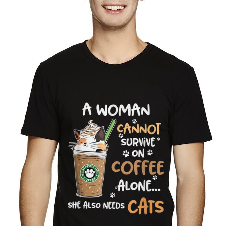 Hot A Woman Cannot Survive On Coffee Alone She Also Needs Cats shirt, Hoodie, Sweater, Longsleeve T-Shirt For Men and Women