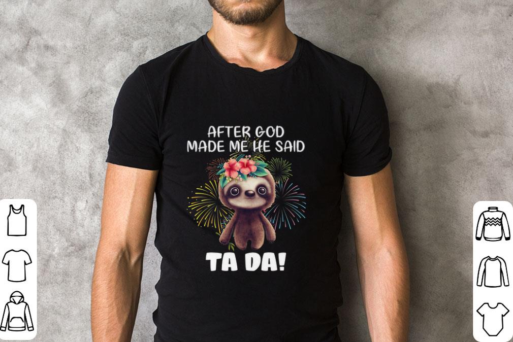 Hot Sloth after god made me he said tada fireworks shirt, Hoodie, Sweater, Longsleeve T-Shirt For Men and Women