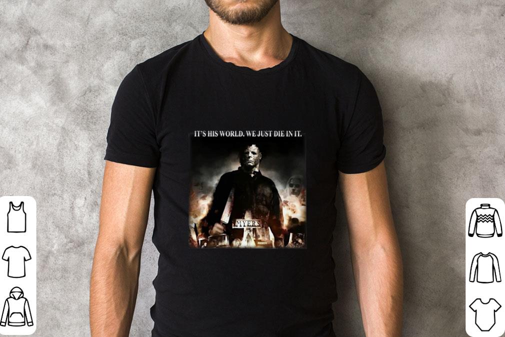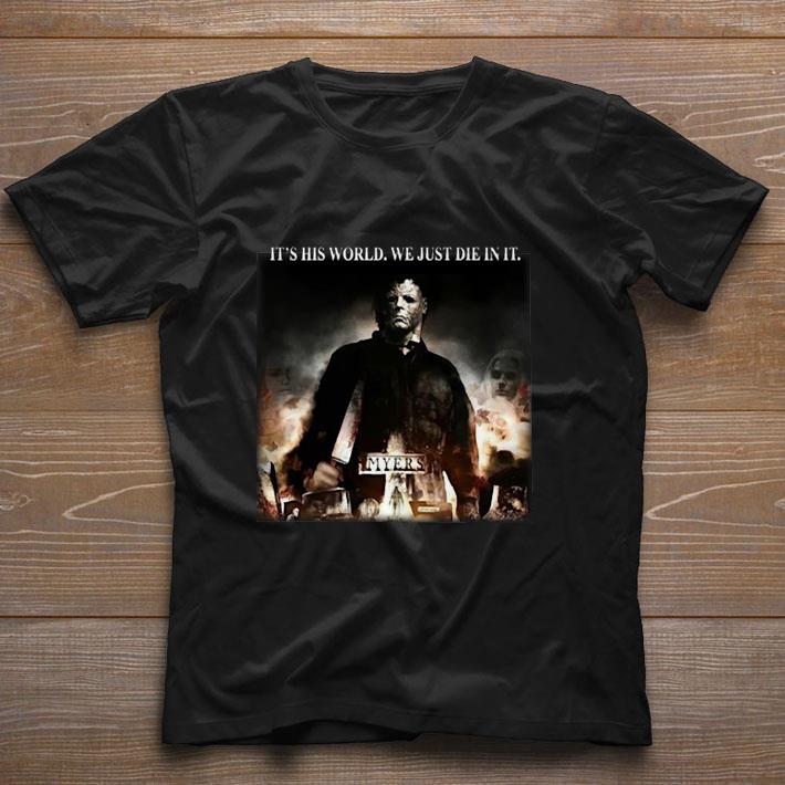 Nice Michael Myers it’s his world we just die in it shirt, Hoodie, Sweater, Longsleeve T-Shirt For Men and Women
