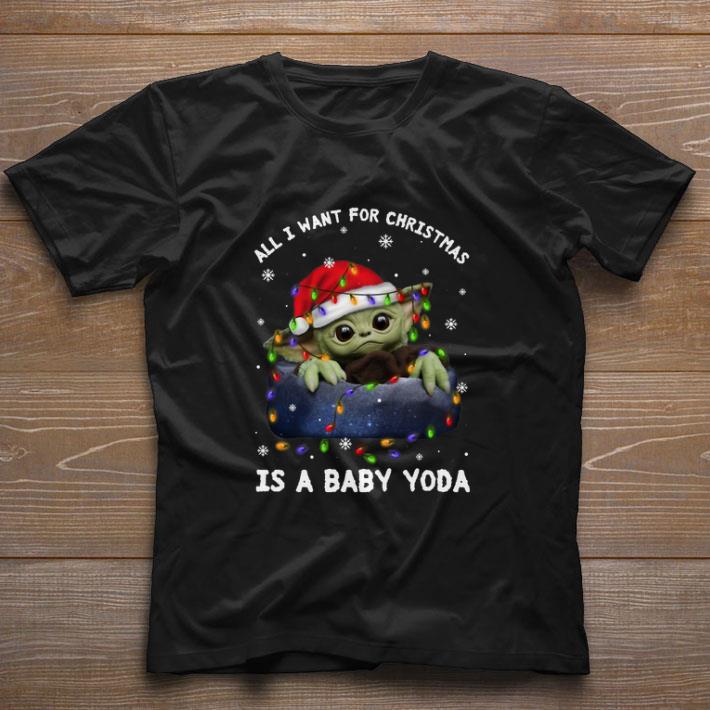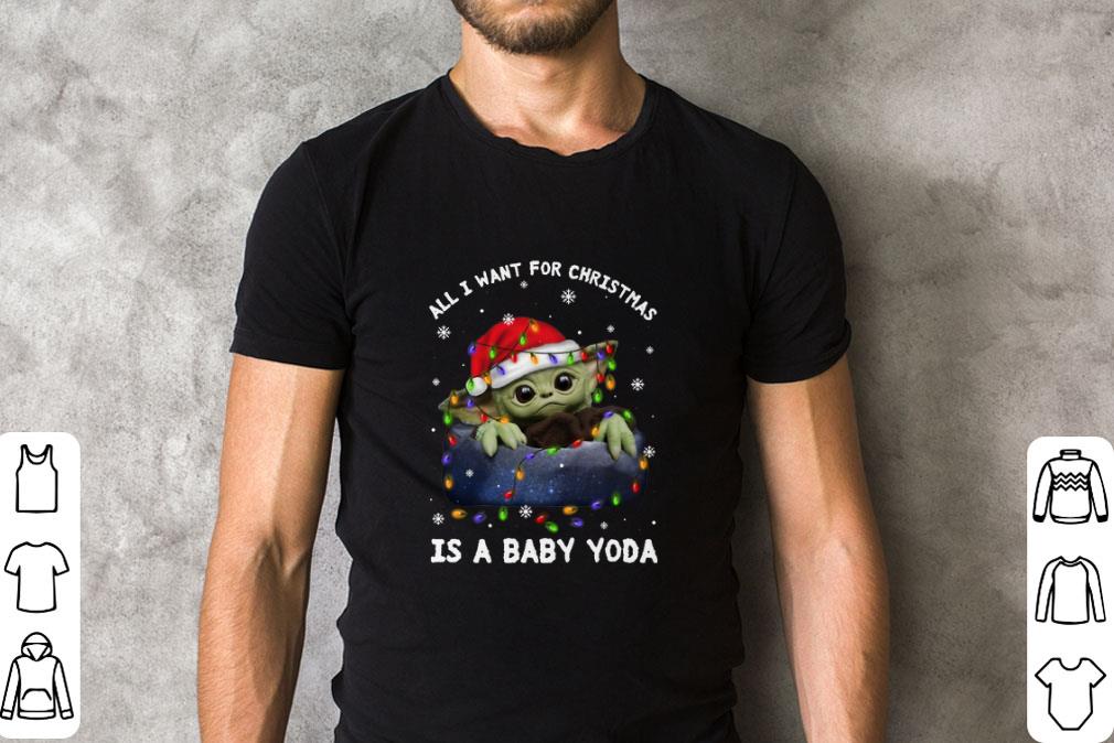 Source: Original Pretty All i want for Christmas lights is a baby Yoda Santa hat shirt