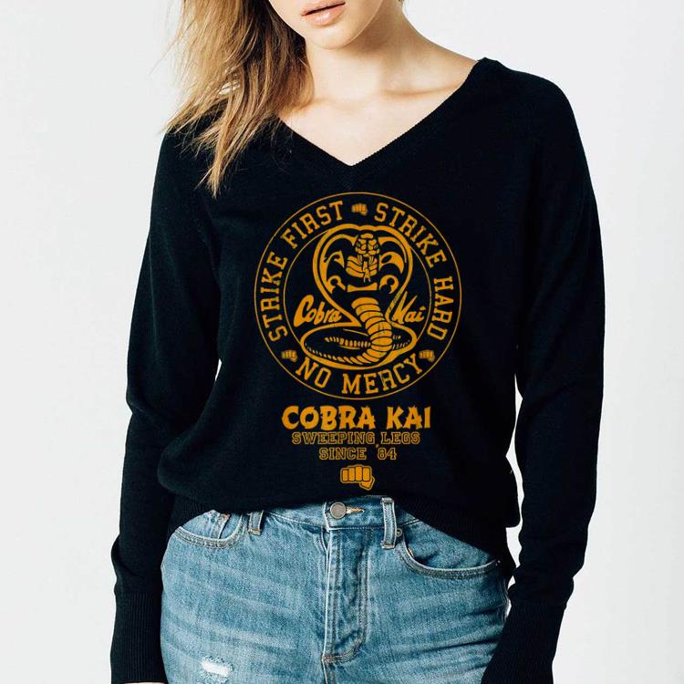 Strike firsr Strike hard no mercy Cobra Kai shirt, Hoodie, Sweater, Longsleeve T-Shirt For Men and Women