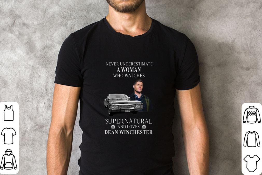 Top Never underestimate a woman who watches Supernatural loves Dean Winchester shirt, Hoodie, Sweater, Longsleeve T-Shirt For Men and Women